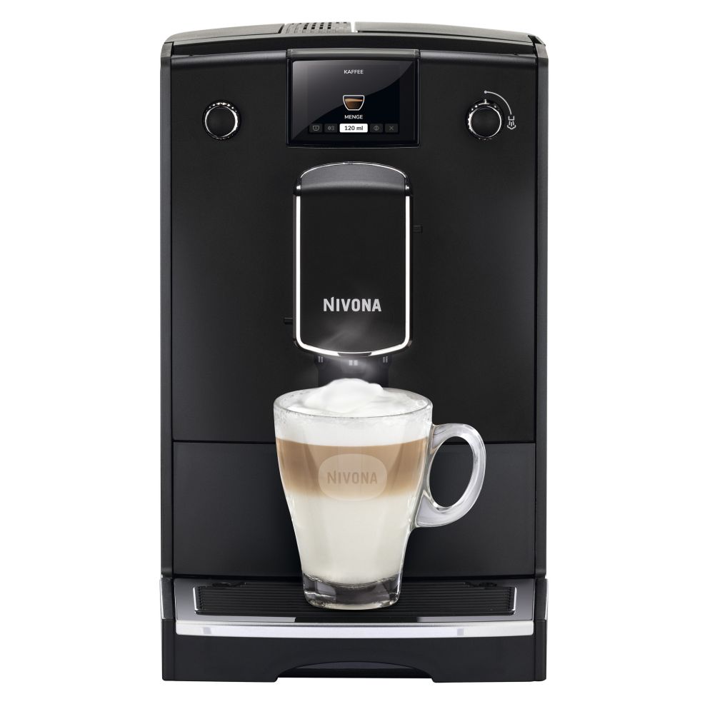 Давление помпы 15 бар. Напряжение 230 Вт. Максимальная мощность 1455 Вт. ЭКО режим. Система предварительного заваривания. Регулировка количества кофе от 20 мл до 240 мл. Отсек для молотого кофе. Отделение для хранения шнура. Съёмный варочный блок. Контрольный индикатор замены фильтра. Регулировка жёсткости воды. Программа суперлёгкой очистки EasyClean. Автоматическая программа очистки от кофейных масел. Автоматическая программа декальцинации. Кофемолка с коническими жерновами из закалённой стали. Aroma Balance System 3 профиля. Cappuccino-Connaisseur -выбор очерёдности подачи кофе и молока - нет. Americano-Connaisseur - выбор очерёдности подачи кофе и воды - нет. Cold brew - холодное заваривание - нет. Выбор крепости кофе - 5 уровней. Регулируемая температура кофе -  3 уровня. Количество степеней помола - 3 уровня. Количество программируемых рецептов Мой Кофе - 5. Регулировка настроек во время приготовления. Редактирование встроенных рецептов. SPUMATORE OneTouch - капучино одним нажатием - нет. Автоматический капучинатор. Одновременное приготовление 2-х чашек кофе без молока. Регулировка температуры подачи горячей воды. Регулировка дозатора под высоту чашки до 14 см. Задние ролики для перемещения. Автоополаскиватель для OneTouch SPUMATORE - нет. Фильтр CLARIS NIRF 700 в комплекте. Подсветка чашек - нет. Подсветка резервуара для воды - нет. Активный подогрев чашек - нет. Датчик наличия кофейных зёрен. Дисплей цветной, не сенсорный. Управление по Bluetooth через приложение NIVONA - нет. Дополнительная шумоизоляция - нет. Ёмкость контейнера для зёрен 250 гр. Ёмкость резервуара для воды 2,2 л. Вес без упаковки 8,4 кг. Габариты кофемашины (Ш xВ xГ), см - 24х34х46. Цвет: Черный, хром. Производство: Португалия