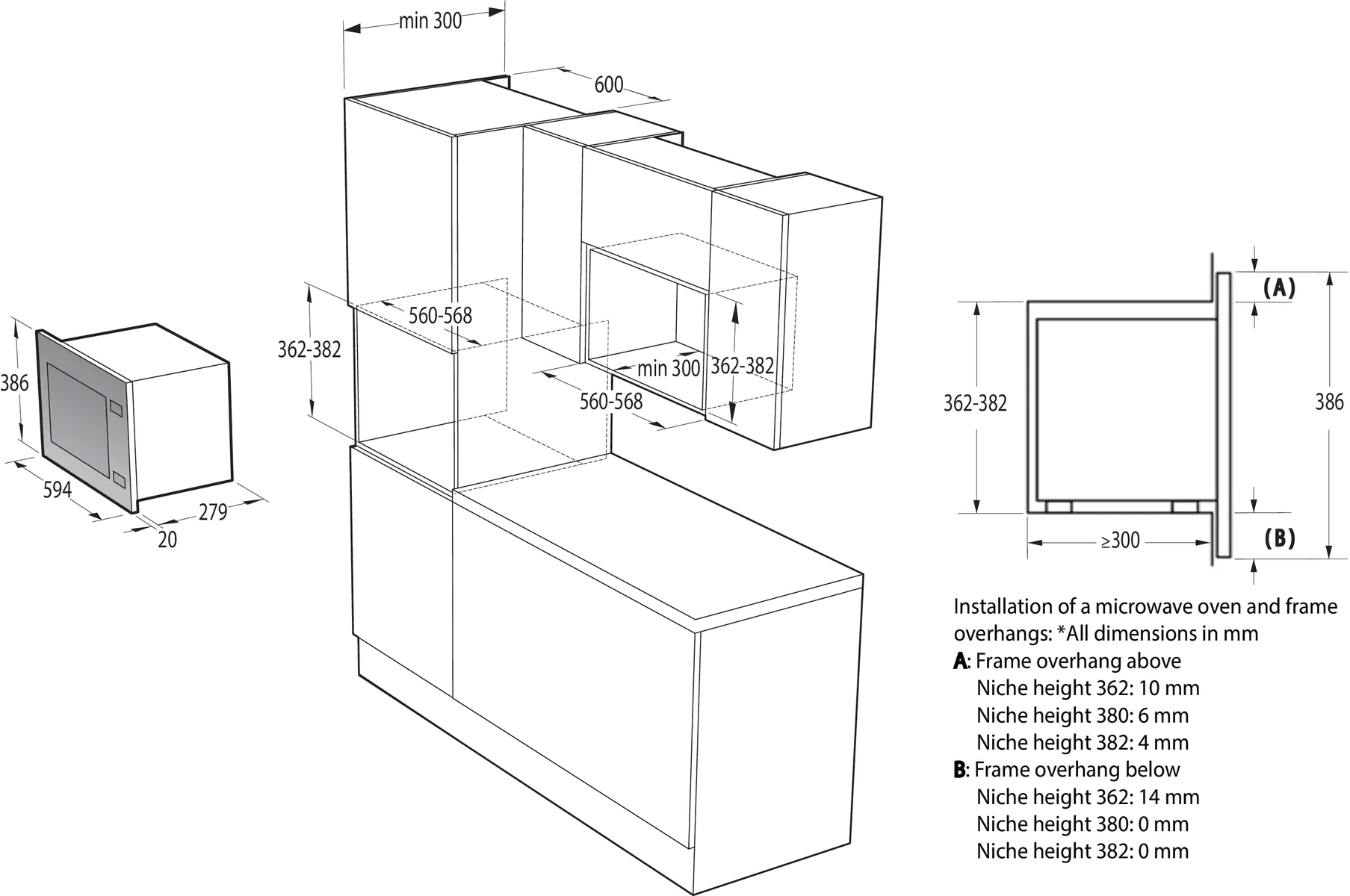 Минимальная высота ниши, мм