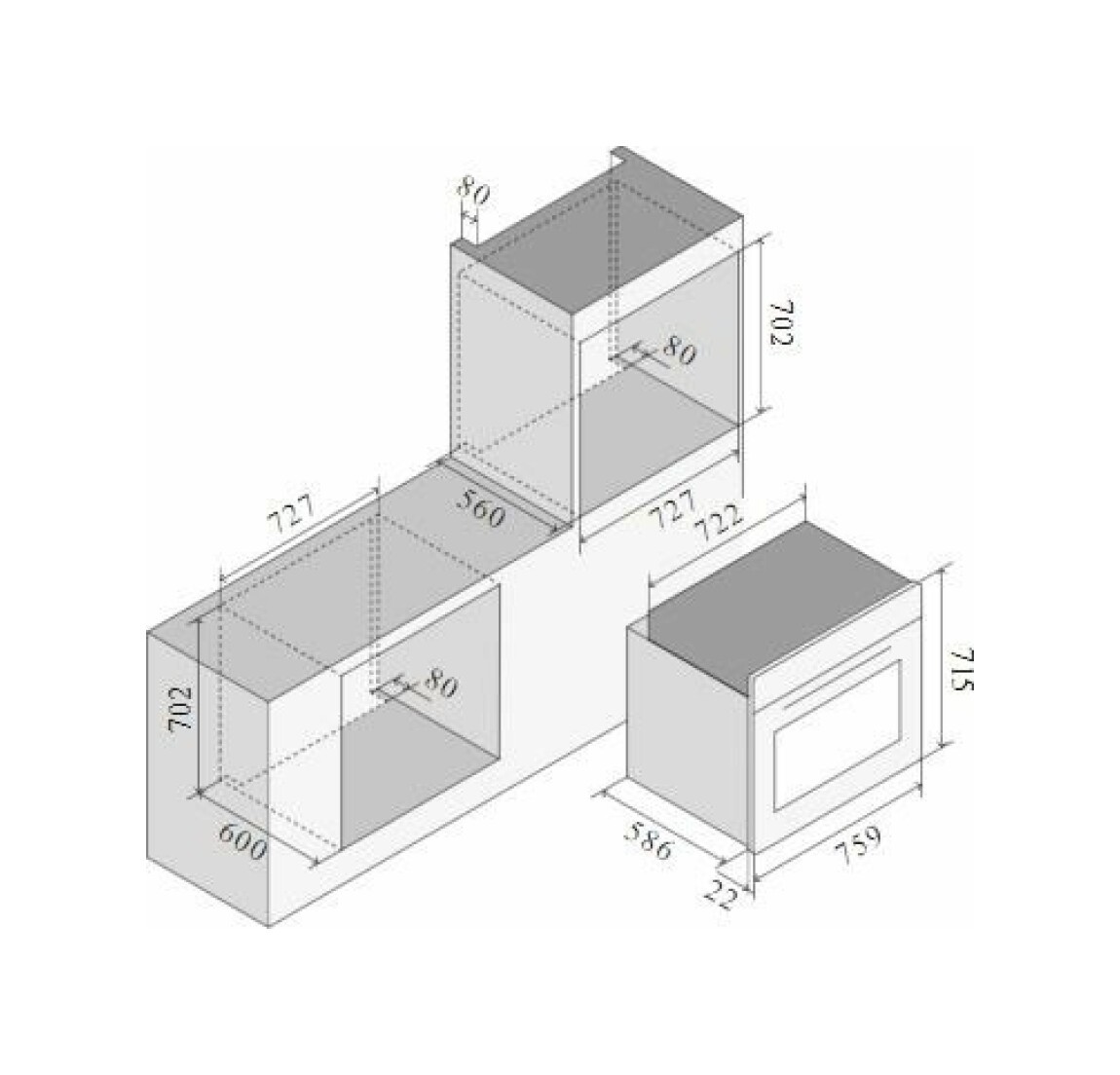 Размеры ниши для встраивания, мм