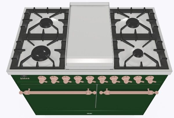 • Тип конфорок: 4 газовые конфорки, Dual конфорка, жарочная поверхность Fry Top