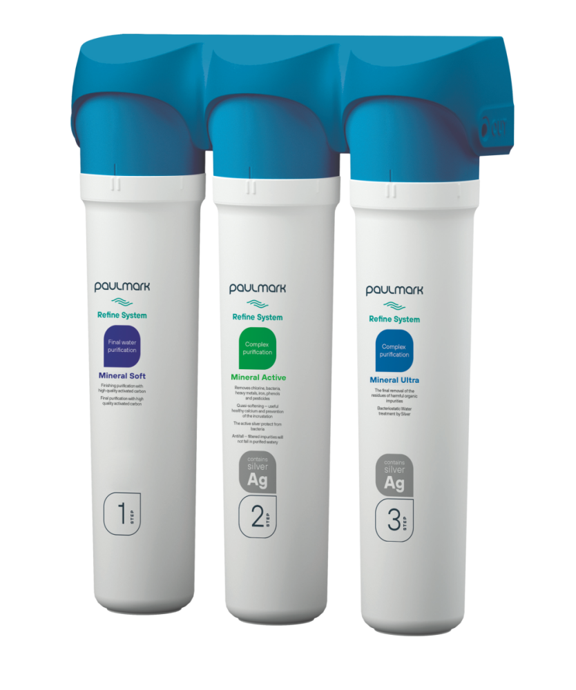 Система фильтрации REFINE SYSTEM предназначена для смесителей 2в1 от PAULMARK (с функцией подключения фильтра питьевой воды). Система разработана для регионов с водой средней степени жесткости. Проблема жесткой воды характерна для большинства регионов России.