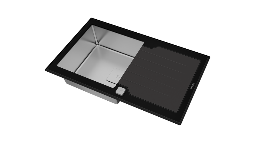• Нержавеющая сталь AISI 304 полированная, 1 мм / закалённое стекло, 8 мм
