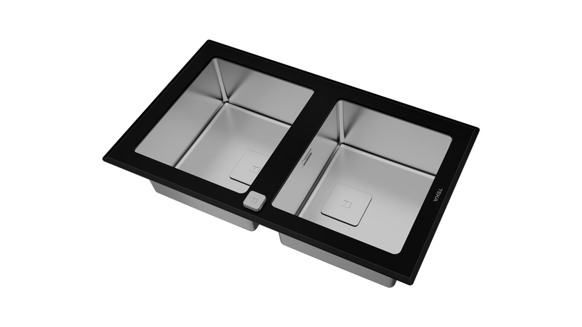 • Нержавеющая сталь AISI 304 полированная, 1 мм / Чёрное закалённое стекло, 8 мм