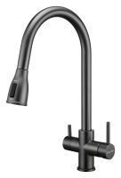 Смеситель LANGE оснащен функциями подключения фильтра питьевой воды, выдвижения излива и двумя режимами подачи водопроводной воды: струя и душ.