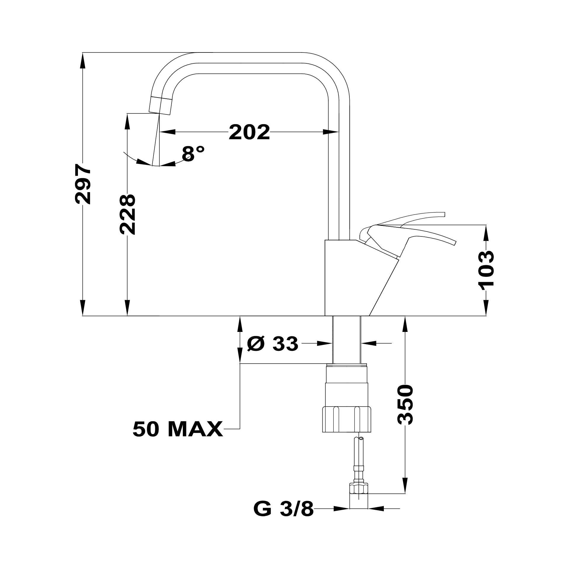 • Противонакипной аэратор поворачивается на 8°