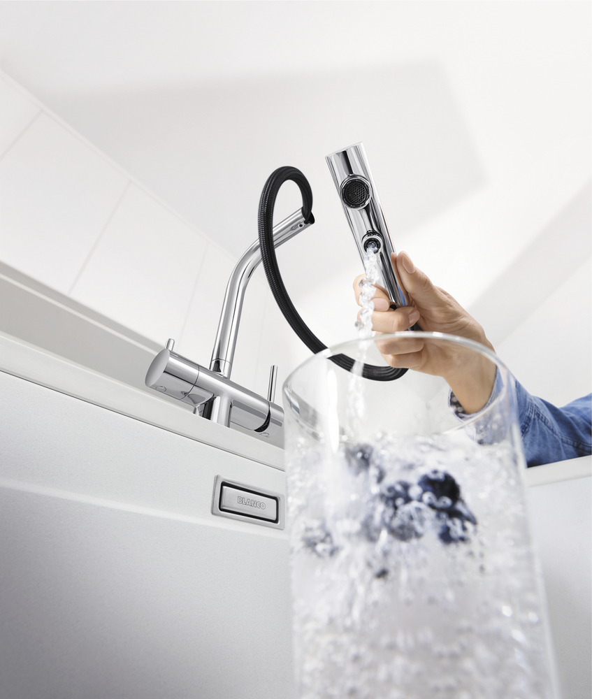 Смеситель с подключением фильтра FONTAS-S II 525204 от Blanco воплощает философию бескомпромиссного качества, инновационного дизайна и функциональности, превращая самое активное место на кухне в продуманный, эргономичный и эстетичный центр для приготовления пищи.