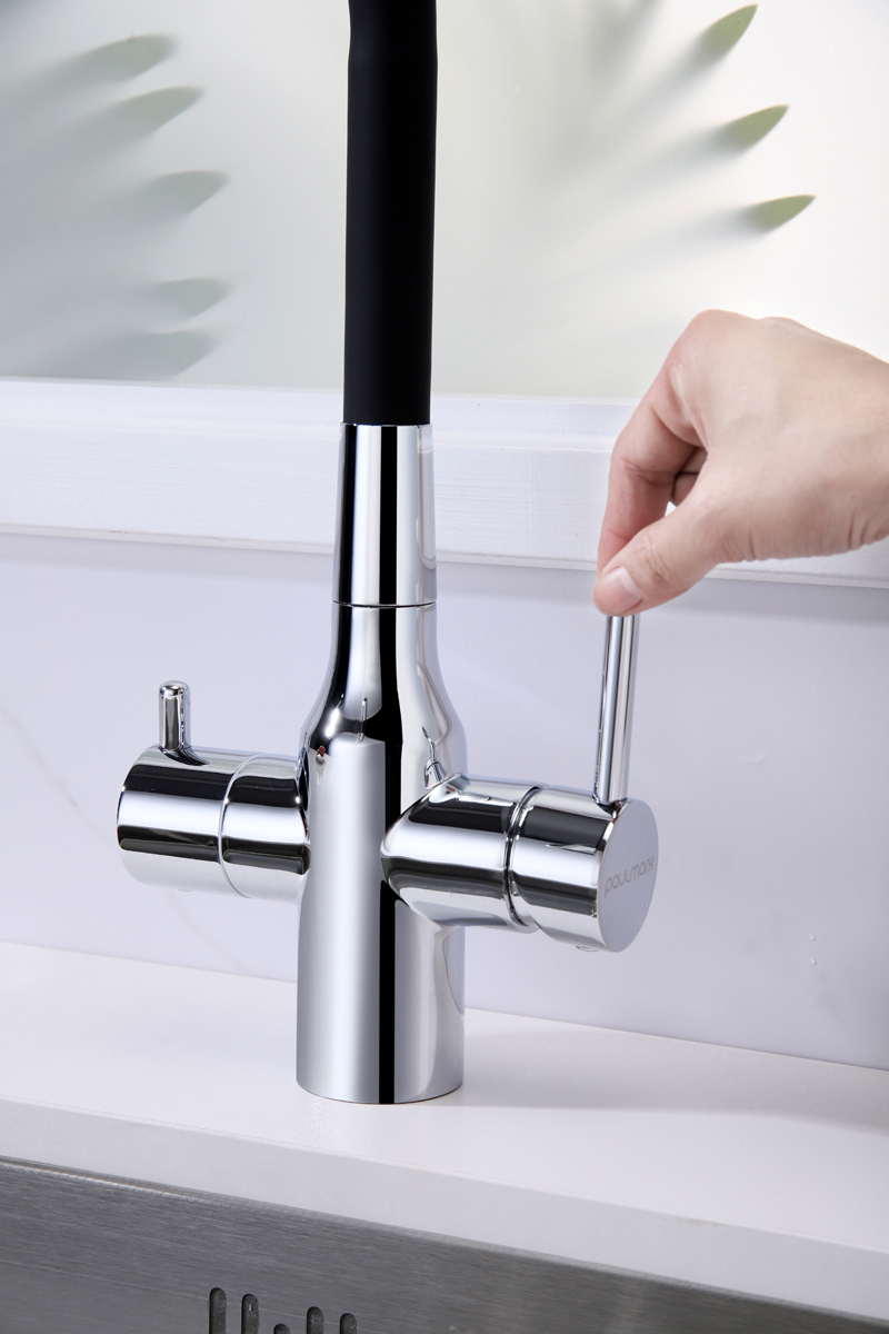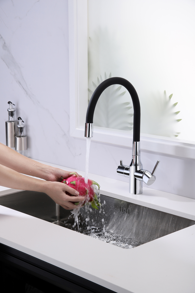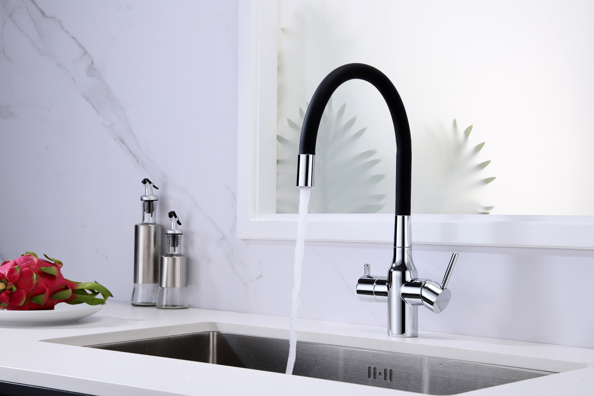 Смеситель для кухни SALIX c возможностью подключения системы фильтрации питьевой воды изготовлен из высококачественной латуни, которая отвечает высочайшим европейским стандартам качества, не содержит свинца, не разрушается со временем и безопасна для здоровья.