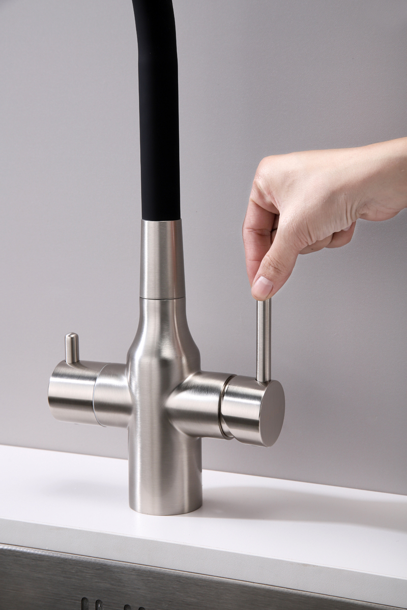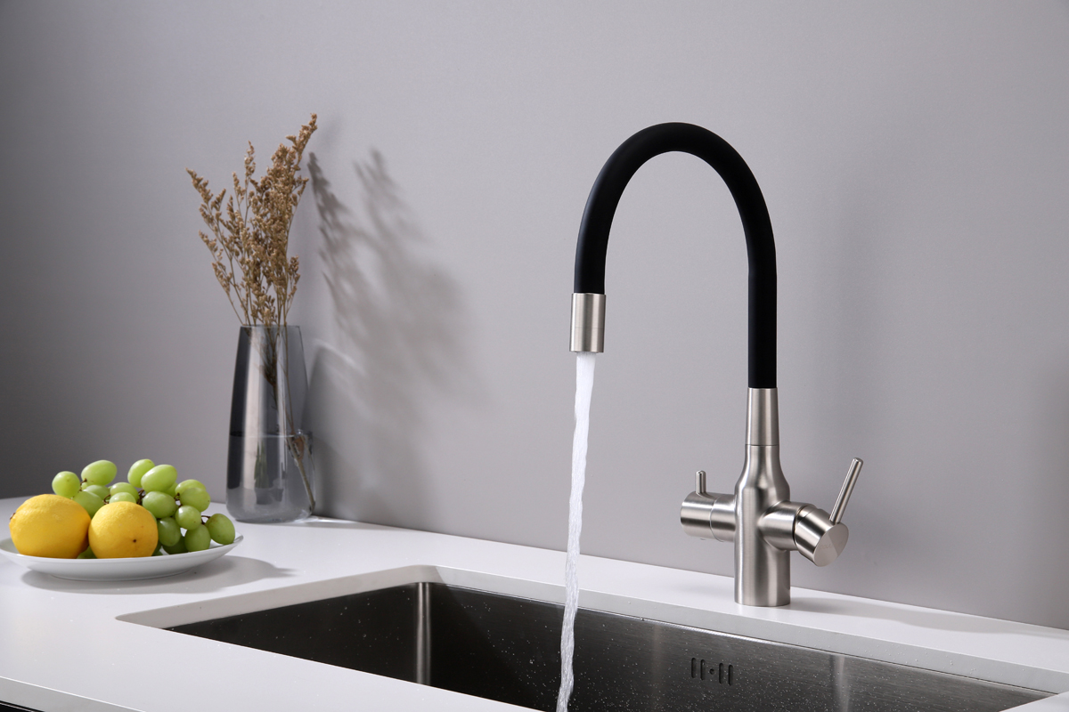 Смеситель для кухни SALIX c возможностью подключения системы фильтрации питьевой воды изготовлен из высококачественной латуни, которая отвечает высочайшим европейским стандартам качества, не содержит свинца, не разрушается со временем и безопасна для здоровья.