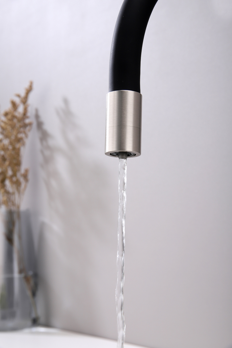 Высокий гибкий излив из силикона, вращающийся на 360 градусов, обеспечивает легкое мытьё и наполнение высокой посуды и ваз. Крепление излива с помощью магнитного держателя обеспечивает надёжную фиксацию.